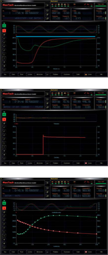 また、分析ソフトウエア「モンコントロール」と組み合わせることでユーザーの仕様に合わせたプログラム・任意の試験シーケンスを柔軟に構成し、「等温試験」「非等温試験」「角速度依存性」「周波数依存性」「温度依存性」「せん断速度依存性」「応力緩和」「遅延」「ヒステリシス」「引張」などの単独の特性、コンビネーション特性をプログラムする事が可能です。