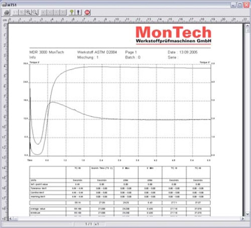 モンコントロールデータユニットは実測値からレオロジー値を計算、値の評価、印刷をします。レポート用の選択項目は試験構成とデータ範囲で指定します。