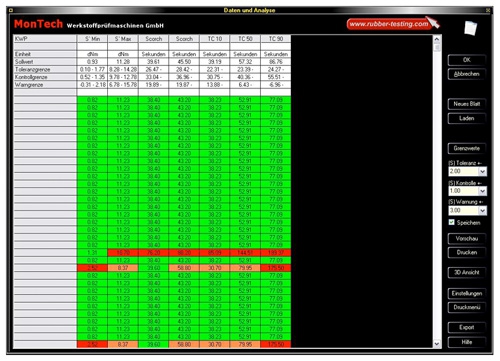 MDR または D-MDR 3000 試験機と組み合わせていただけば架橋レートの試験が可能です。事前設定したキュアレートで生産用のテストサンプルを順々に試験することが可能です。試験で決めた架橋レートに到達したら試験シーケンスはキャンセルされます。